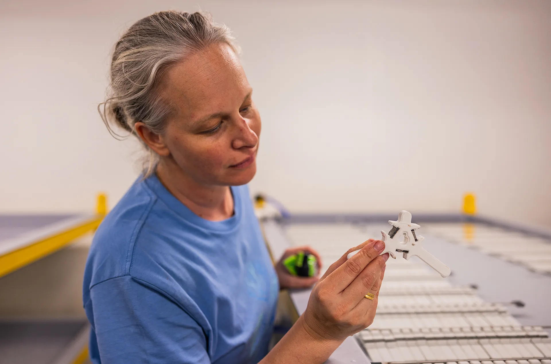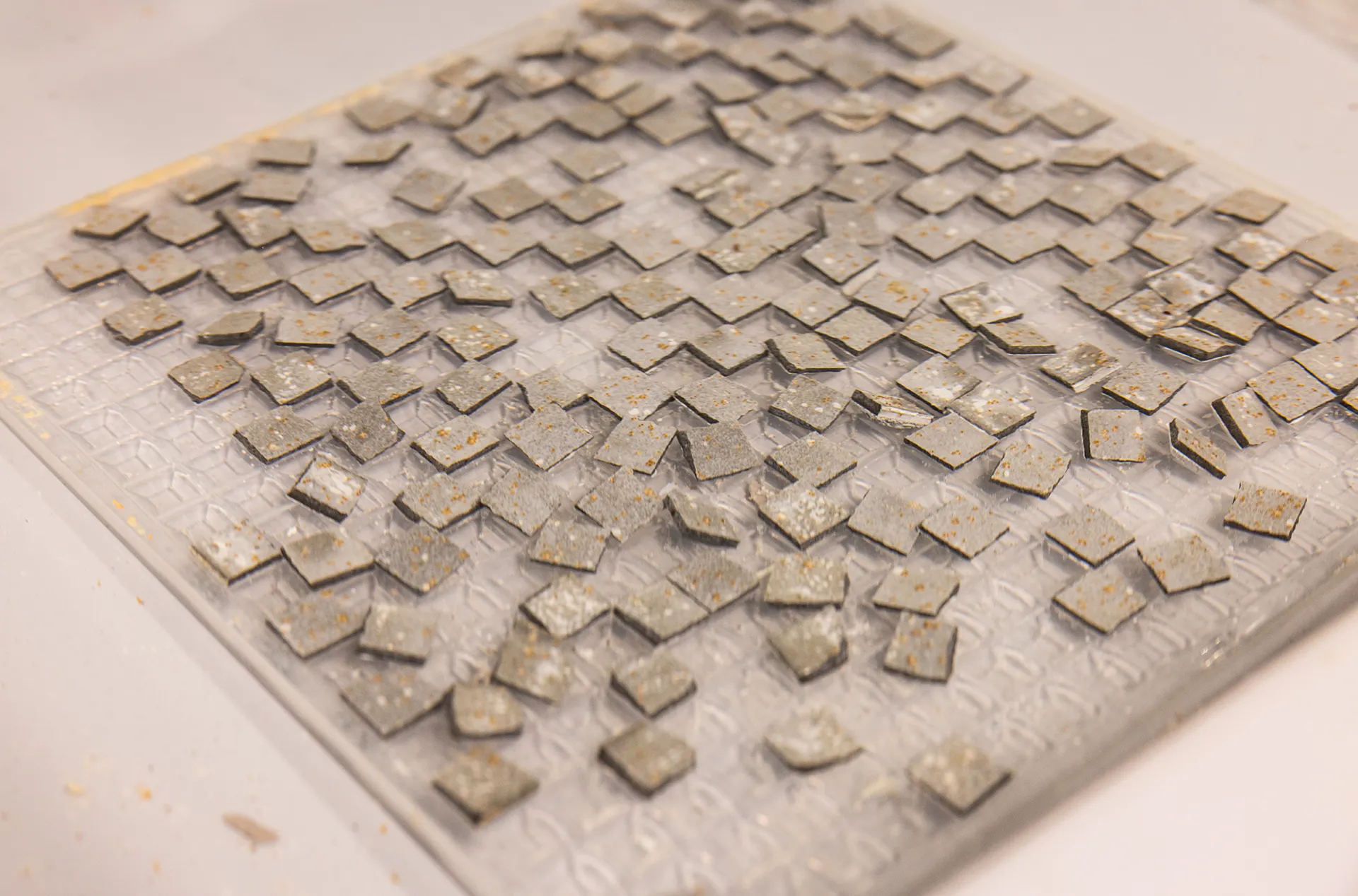 Small concrete tabs that coral larvae settle on. They’re then inserted into the ceramic structures and dropped onto the reef.