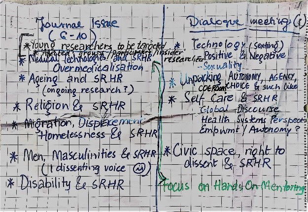 The second critical point of discussion centred around capacity building for undertaking rights- and evidence-based research and publishing in peer-reviewed scientific spaces. As is common to SRHM’s process, a significant accompaniment to the regional journal issue would be a capacity building and mentoring component. While mentoring has always been an integral part of the development of journal articles, fostered through the editorial process, the capacity building initiative envisaged as a part of this process seeks deeper, more sustained and longer term engagement that is rooted in regional expertise, engagement and collaboration.