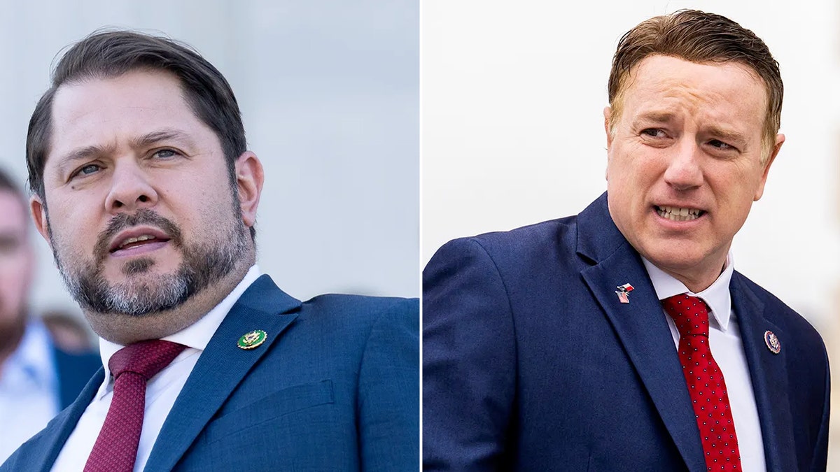 Rep. Ruben Gallego, D-Ariz., left, and Rep. Pat Fallon, R-Texas, requested a briefing with Alejandro Mayorkas regarding what is being done to protect U.S. water systems from being hacked. (Bill Clark/CQ-Roll Call, Inc via Getty Images / Tom Williams/CQ-Roll Call, Inc via Getty Images – Fallon)