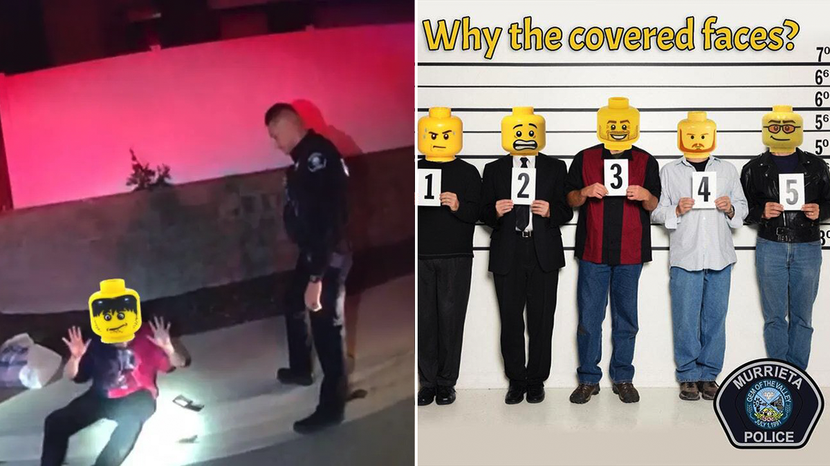 In an Instagram post from Tuesday, the Murrieta Police Department explained that it was placing Lego head images over suspects’ faces to mask their identities in accordance with state law.