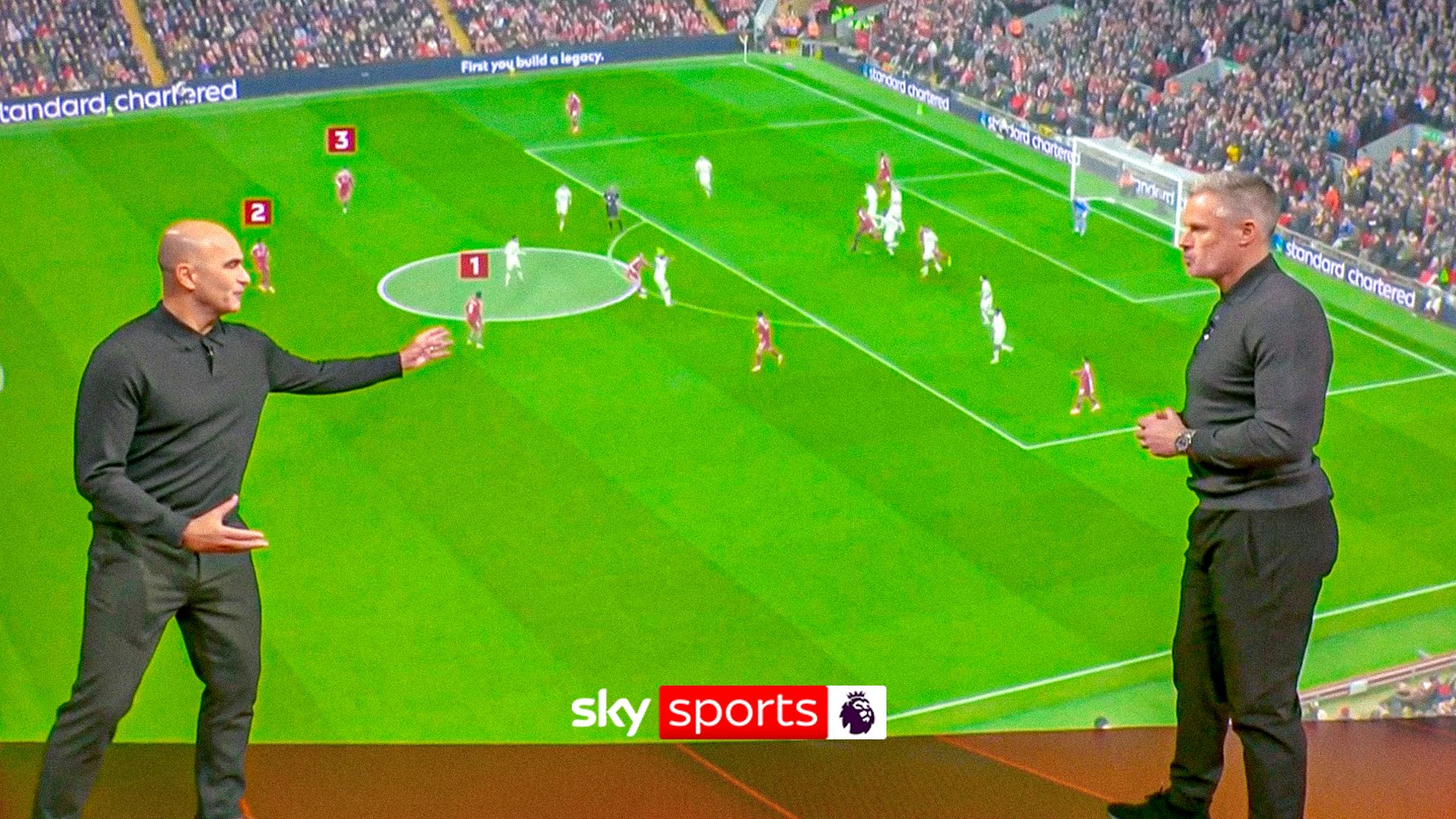 Jamie Carragher and Portugal manager Roberto Martinez analyse the mistakes that are costing Arne Slot’s Liverpool this season, including the lack of duels being won by midfielders.