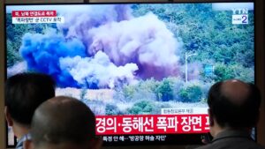 North Korea blows up parts of inter-Korean road and rail links in a symbolic display o...