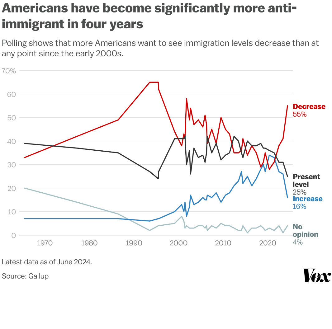 Meanwhile, skepticism of immigration spiked nationally in recent years as the amount of migration at the southern border grew.